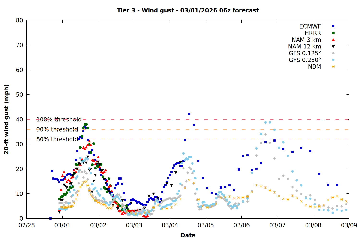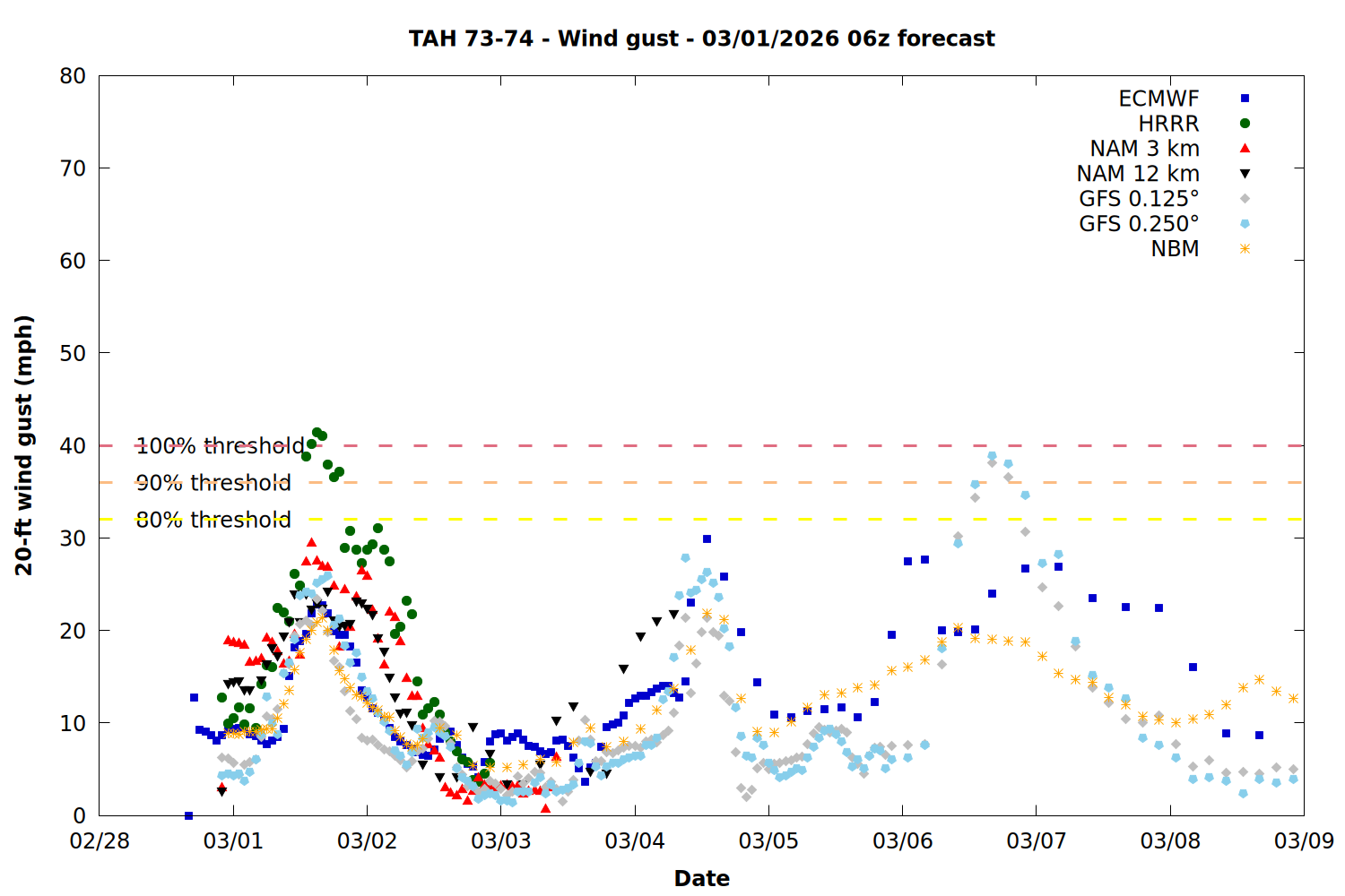 | Zone | Feb 28 | Mar 01 | Mar 02 | Mar 03 | Mar 04 | Mar 05 | Mar 06 |